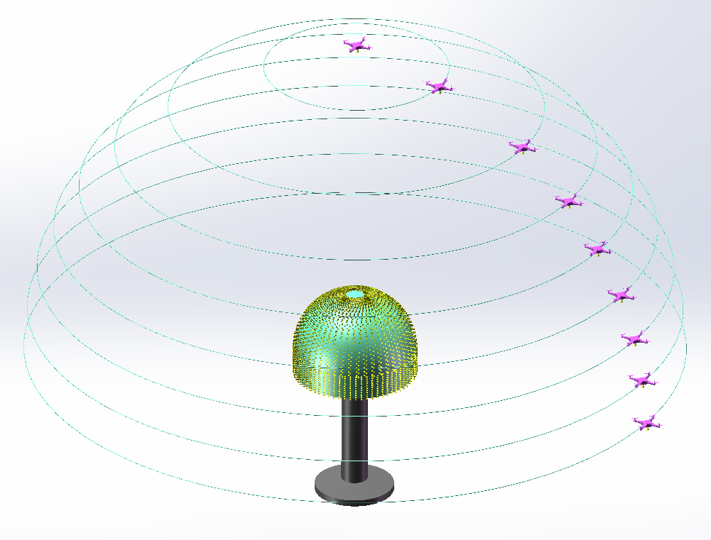 選取外場(chǎng)天線作為測(cè)試目標(biāo),利用天線測(cè)試解決方案對(duì)外場(chǎng)天線進(jìn)行方向圖測(cè)試。地面待測(cè)天線處于發(fā)射模式,輻射電磁波。無(wú)人機(jī)平臺(tái)攜帶接收機(jī)模塊繞飛待測(cè)天線,并采集電磁波信號(hào),通過(guò)數(shù)據(jù)鏈傳輸系統(tǒng)將測(cè)量數(shù)據(jù)發(fā)送至地面端。開始測(cè)試后,無(wú)人機(jī)平臺(tái)按照規(guī)劃好的飛行路徑采集數(shù)據(jù),地面站單元實(shí)時(shí)獲取無(wú)人機(jī)平臺(tái)的位置信息和數(shù)據(jù)信息,最后通過(guò)分析軟件進(jìn)行數(shù)據(jù)處理,得到待測(cè)天線的方向圖參數(shù)。