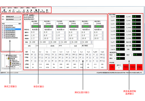 ● 具有高壓電源動態(tài)參數(shù)測試功能,可實現(xiàn)電壓/負載調(diào)整率、上下電波形過沖、輸出電壓、電流、功率及效率等參數(shù)測試;