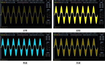 4457系列示波器采用數(shù)字熒光三維顯示技術,通過顏色的亮暗或冷暖來表示事件發(fā)生的概率,并提供正常、反相、色溫、光譜等4種波形色彩,增強了查看偶發(fā)事件的能力。