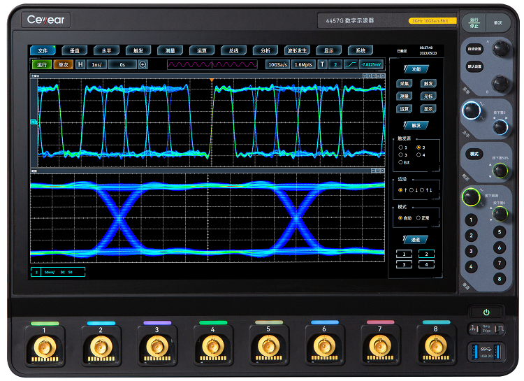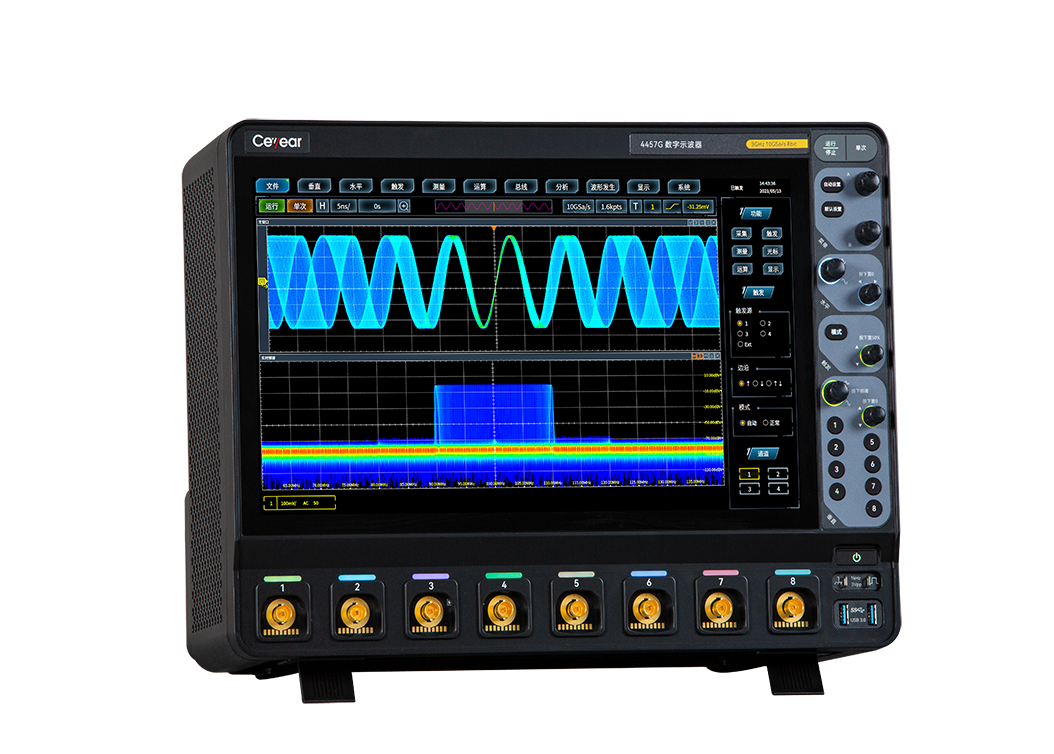 4457系列數(shù)字示波器集示波器、邏輯分析儀、函數(shù)發(fā)生器、總線分析儀、實時頻譜分析儀及數(shù)字電壓表等多種儀器于一體,具有波形自動設置、參數(shù)自動測量與統(tǒng)計、光標測量、數(shù)學運算、FFT頻譜分析、波形錄制與回放、串行總線分析、極限模板測試、功率測量與分析、波特圖分析、眼圖及抖動分析等功能,支持以太網(wǎng)程控,方便集成開發(fā)使用。