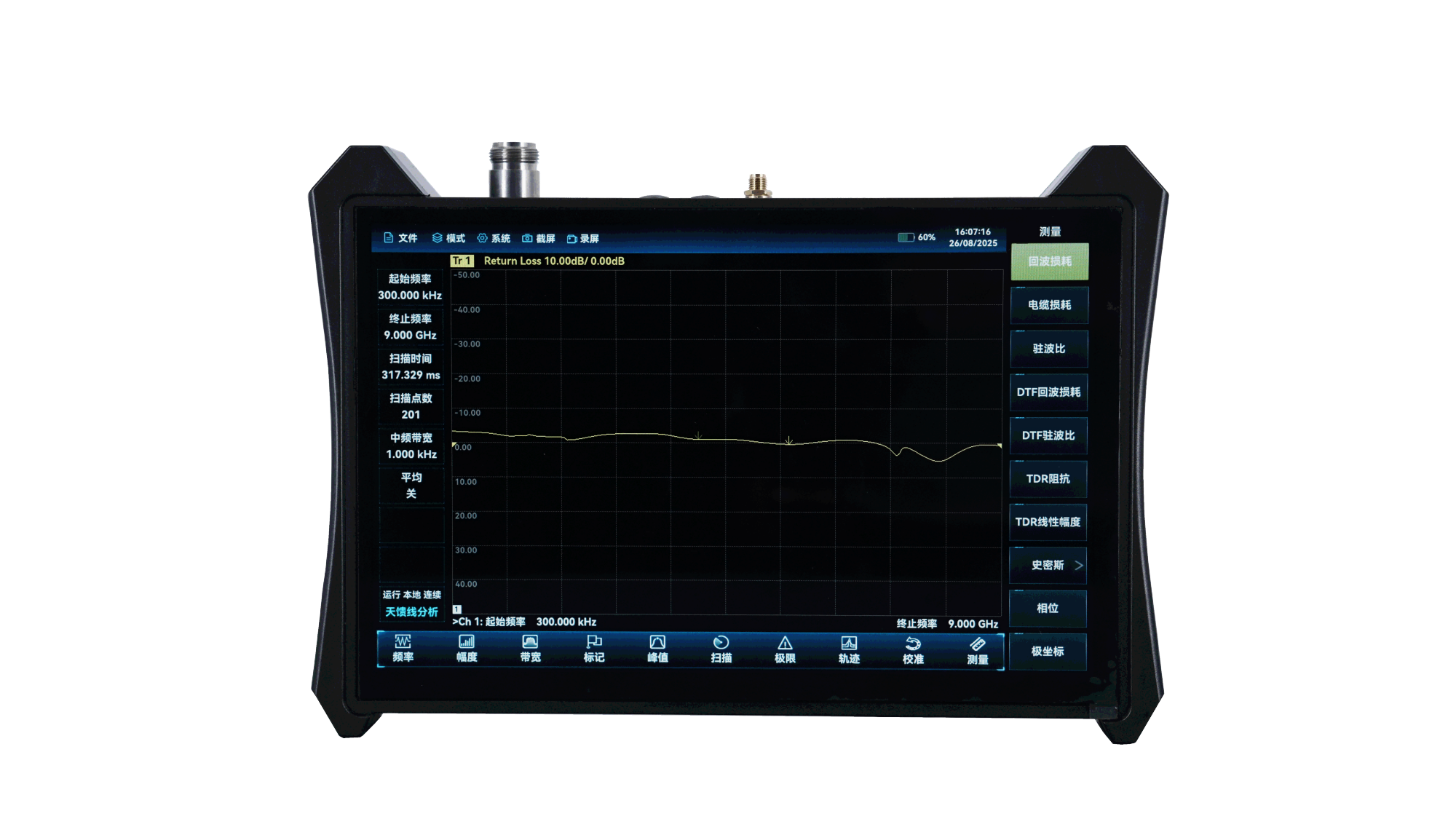Ceyear 3681天饋線測(cè)試儀產(chǎn)品頻率范圍覆蓋300kHz~9GHz,具有線纜損耗、駐波比、回波損耗等參數(shù)的測(cè)試功能,可利用故障定位-駐波比或故障定位-回波損耗功能對(duì)細(xì)小的問(wèn)題進(jìn)行定位,從而杜絕故障隱患。