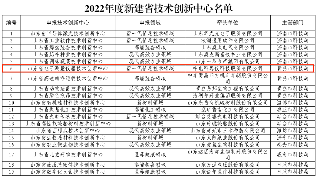 近日,山東省科學(xué)技術(shù)廳發(fā)布《關(guān)于批準(zhǔn)建設(shè)2022年山東省技術(shù)創(chuàng)新中心的通知》,電科思儀電子測(cè)量?jī)x器技術(shù)創(chuàng)新中心獲批籌建。