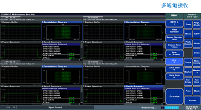 5252D能夠支持多通道并行接收測(cè)試,并且能夠?qū)π盘?hào)進(jìn)行多域同時(shí)分析即時(shí)域、頻域以及調(diào)制域分析,同時(shí)能夠?qū)π盘?hào)多個(gè)參數(shù)進(jìn)行測(cè)量(EVM、最大功率、OBW、ACLR以及SEM)